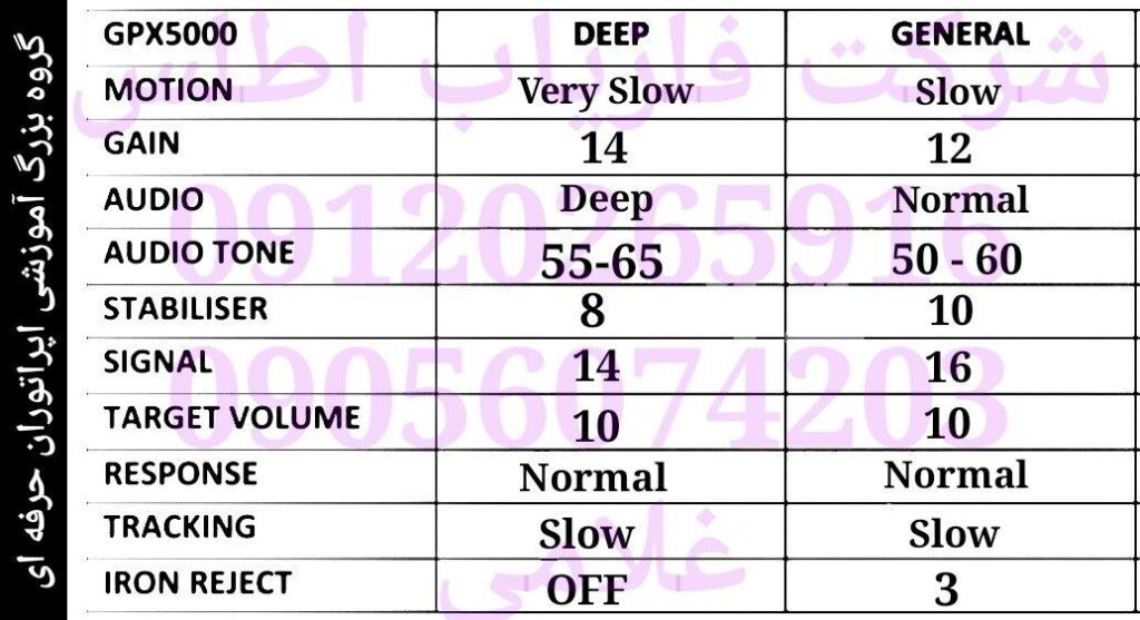 تنطیمات نقطه زن جی پی ایکس ۵۰۰۰ برای عمق زنی با کویل دابل دی