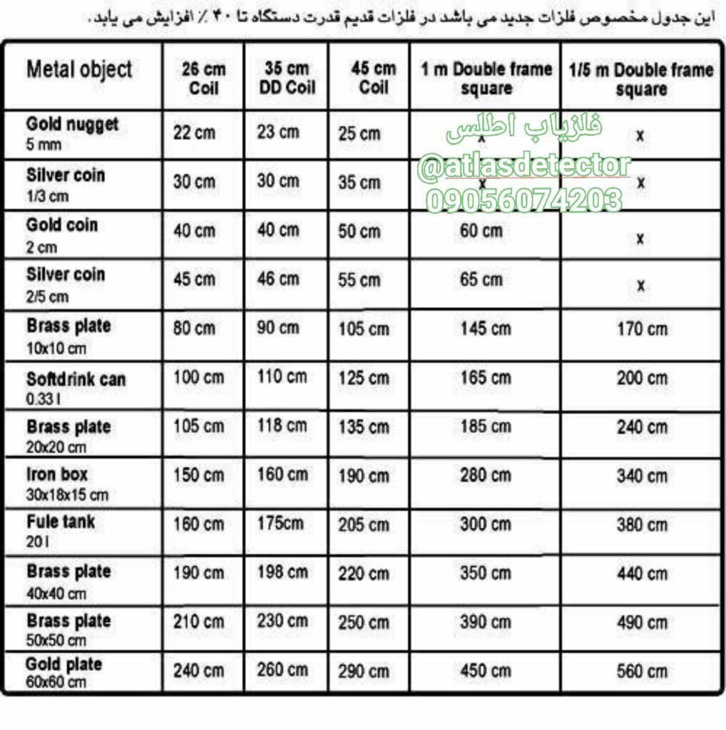 حداکثر عمق تشخیص برای اشیاء فلزی بسیار بزرگ.