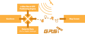 GPSi از عملکرد بالا و انعطاف پذیری سیستم موقعیت یابی GPS u-blox برای یکپارچه سازی داده های مکان و زمان با تنظیمات فلزیاب و اطلاعات هدف استفاده می کند. و داده های مکانی برای جستجو در نقطه یابی  WayPoint ، FindPoint و GeoHunt  را ذخیره می کند که با استاندارد XChange 2 سازگار هستند.